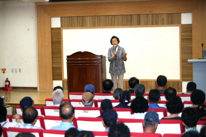 12일 강남구는 청담동에 위치한 청담평생학습관에서 공공일자리 참여자 200여명을 대상으로 재해 없는 사업장 조성과 근로자 권익보호를 위한 안전교육을 실시했다. 사진은 신연희 구청장이 인사말을 전하는 모습.(사진제공=강남구청)