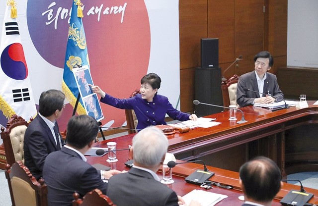 박근혜 대통령이 14일 오전 청와대에서 열린 고고도미사일방어체계(사드·THAAD) 주한미군 배치 결정과 관련해 국가안전보장회의(NSC)를 주재하고 있다.