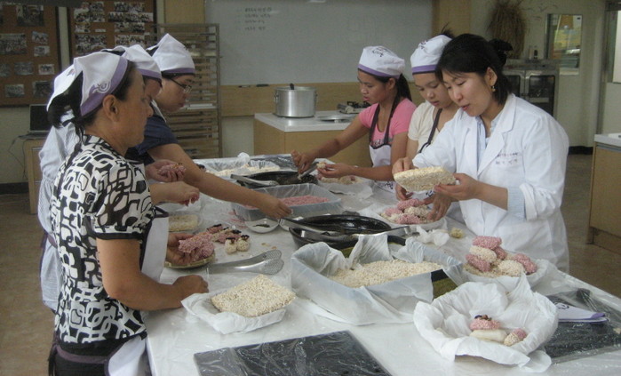 | ▲ 다문화 여성들이 전통문화체험 활동으로 한과를 만들고 있는 모습. | ||