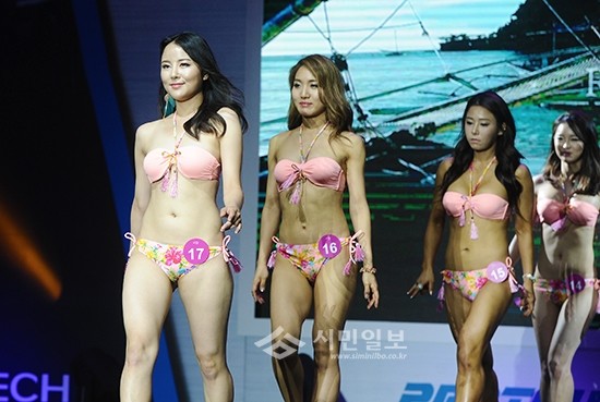 이슈데일리와 투비스가 주관한 '2016 월드핏스타 코리아(2016 WORLD FITSTAR KOREA)'에 참석한 대한민국을 대표하는 모델들이 완벽한 몸매를 과시하며 메인 무대로 입장하고 있다.