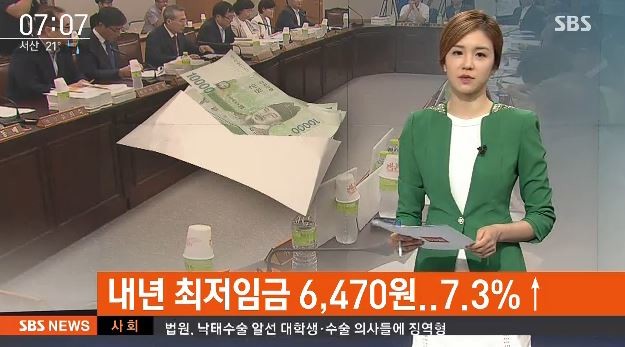 16일 정부세종청사 고용노동부에서 열린 최저임금위원회에 따르면 '2017년도 최저임금액'이 지난해보다 7.3% 인상됐다.
