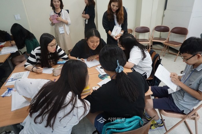 최근 경북 구미시와 구미시지역사회보장협의체는 시립중앙도서관에서 중고생 60명을 대상으로 '2016 비전아카데미' 를 개최했다. 사진은 행사에 참석한 학생들이 토의하는 모습.(사진제공=구미시청)