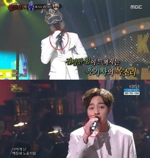 한 네티즌은 두 사람의 마이크 잡는 손의 위치를 지적했다. 공개된 사진 속 로이킴과 흑기사는 마이크 위에 오른손가락을 살짝 얹고 노래를 부르고 있어 동일한 모습이다.