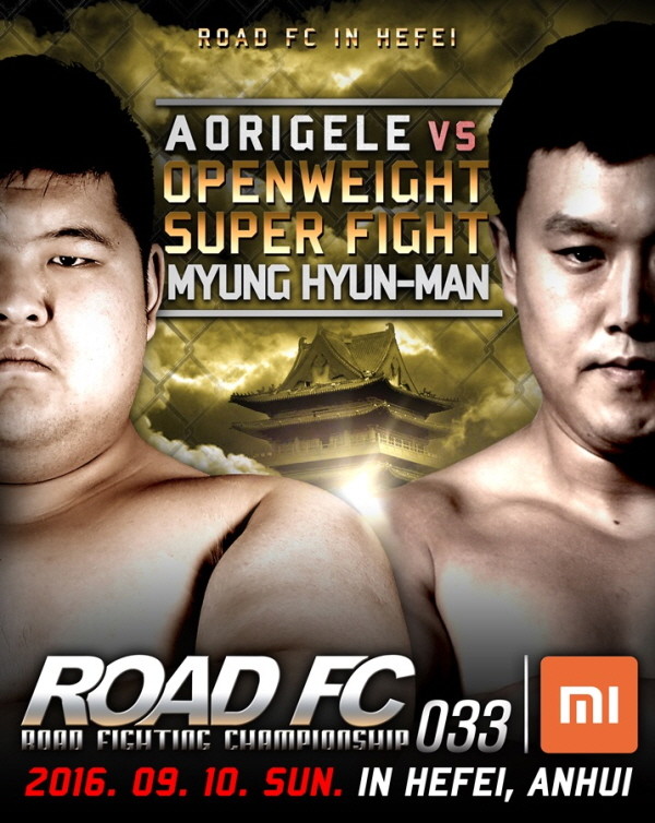 로드FC는 20일 "명현만과 아오르꺼러가 오는 9월 10일 중국 허페이올림픽체육관에서 열리는 샤오미 로드FC 033 대회 메인이벤트 매치를 벌인다"고 발표했다. 이번 샤오미 로드FC 033은 지난해 12월 중국 진출 이후 벌써 네 번째 중국 대회다.