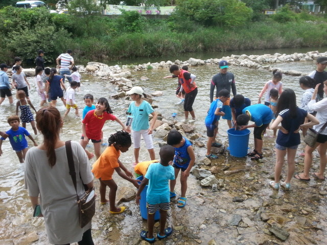 | ▲ 지난해 여름방학 프로그램에 참석한 학생들이 은어를 잡고 있다. | ||