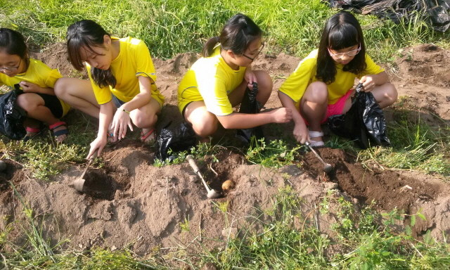 | ▲ 지난해 여름방학 홈스테이에 참석한 학생들이 감자를 캐고 있다. | ||