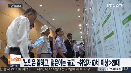 60대 이상의 노인은 일하고 20대 젊은이는 노는 현상이 나타나고 있어 사회 문제로 떠오르고 있다.