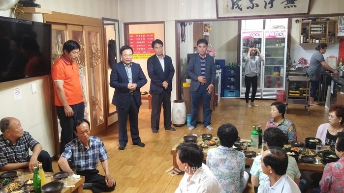 지난 20일 경북 구미시 임오동에서는 노인후원회 주관으로 지역내 식당에서 16곳 경로당 노인 40명을 초대해 식사를 대접했다. 사진은 관계자들이 노인들에게 인사말을 하는 모습.(사진제공=구미시청)