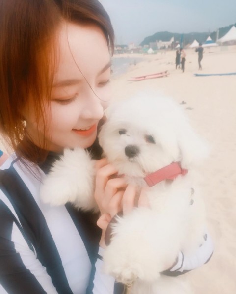 강아지를 사랑스럽게 바라보는 그의 모습에 네티즌은 "둘 다 너무 귀여워", "강아지가 내가 됐으면...", "여신이다" 등의 반응을 보였다.