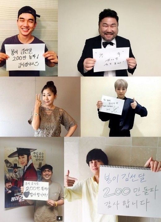 영화 '봉이김선달'(감독 박대민)이 25일 200만 관객 돌파를 기념해, 배우들의 감사 인증샷을 공개했다. '봉이김선달'의 누적 관객수는 2,005,996명이다.