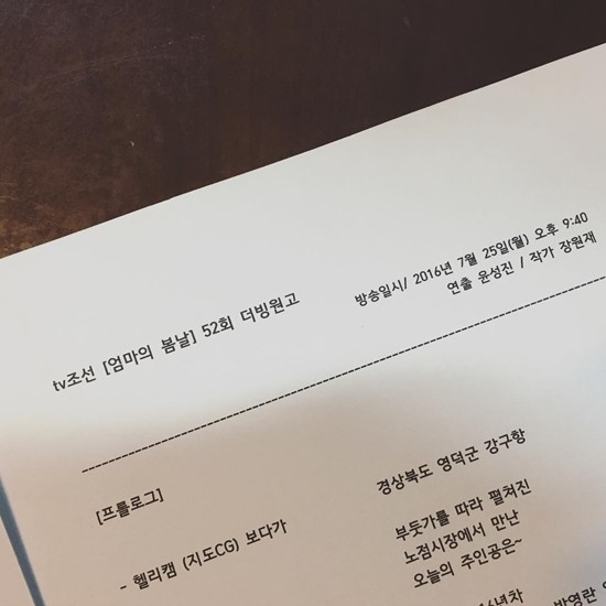 정인영은 25일 자신의 인스타그램에 "따뜻한 얘기 많이 나눠드릴게요. 함께해요"라는 글과 함께 '엄마의 봄날' 더빙 원고 사진을 공개했다.