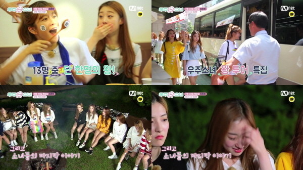 한편 13인 완전체로 단합대회를 떠나게된 우주소녀 멤버들은 맛있는 식사와 수상레저로 힐링을 만끽했다. 펜션에서 밤이 깊어지자 마지막 촬영을 아쉬워하는 멤버들의 토크가 이어져갔다. 늘 천진난만해 보이기만 하던 우주소녀 멤버들은 촬영도중 폭풍눈물을 흘리며 진솔한 속내를 털어놓기도 했다.
