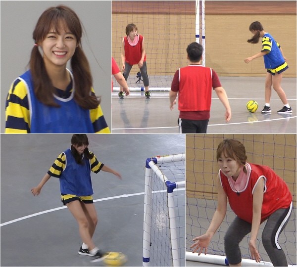 이후 이서진-김종국-노홍철-김세정은 '어서옵쇼 유나이티드'를 결성해 'FC 개콘'으로 뭉친 정태호-이상훈-오나미-송영길과 4대 4 축구대결을 펼칠 예정이다. 그런 가운데 공개된 스틸 속에는 대치중인 김세정-오나미의 모습이 담겨있어 눈길을 끈다.
