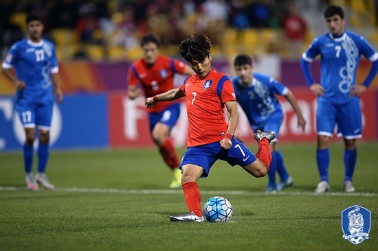 대표팀은 후반시작과 함께 골키퍼 김동준을 구성윤과 교체했다. 후반 8분 황희찬의 패스를 받은 류승우가 날카로운 슛으로 세 번째 골을 안겨줬다.