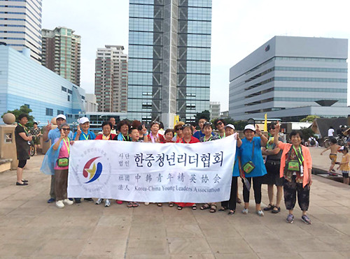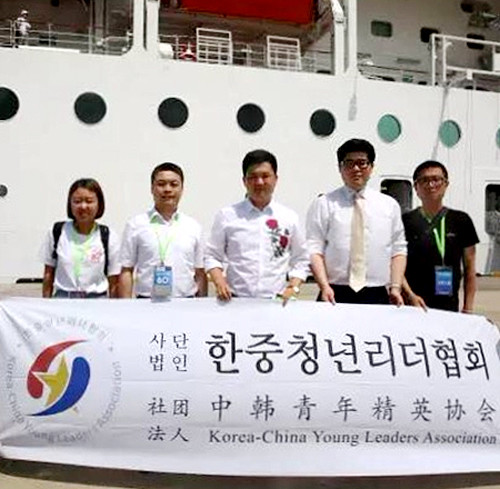 | ▲ 사단법인 한중청년리더협회 이사장 전병준(왼쪽에서 네번째)이 지난 중국 크루즈 관광객들을 환영하고 있다. | ||