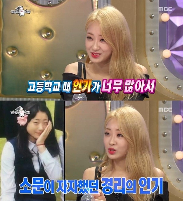 이날 경리는 과거 남다른 인기를 과시해 눈길을 끌었다. 그는 “고등학교 첫 날부터 학교 선배 언니들이 후배들을 찾으러 왔다"라며 "나를 보기 위해 많은 이들이 찾아왔는데, 부끄러워서 줄곧 고개를 숙이거나 엎드려 자다보니 목에 깊은 주름이 생기더라”고 말했다.