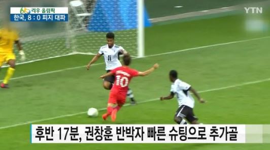 한국 올림픽 축구 대표팀은 5일(한국시간) 브라질 사우바도르 폰치 노바 아레나서 열린 피지와의 올림픽 남자축구 조별리그 C조 1차전에서 류승우의 해트트릭과 권창훈, 석현준, 손흥민 활약에 8대 0 이란 압도적인 승리를 거머줬다.