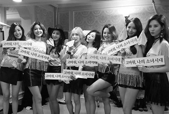 공개된 사진 속 그들은 '고마워, 나의 소녀시대'가 적힌 피켓을 들고 환하게 웃고 있다.