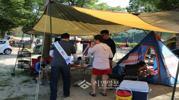 최근 경기 연천군은 여름철 안전사고 예방을 위해 '제245차 안전점검의 날' 캠페인을 한탄강관광지 오토캠핑장에서 진행했다. 사진은 관계자가 캠핑장을 이용하는 관광객에게 안전사고 예방 홍보하는 모습.(사진제공=연천군청)