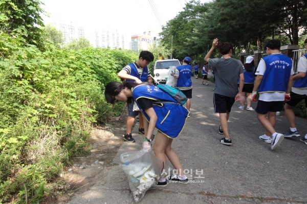 최근 경기 용인시 수지구 죽전1동은 주민자치위원과 지역내 학생 등 70여명이 참여해 탄천과 안대지천 일대에서 쓰레기를 줍는 등 환경정화 활동을 펼쳤다. 사진은 자원봉사에 참여한 학생들이 쓰레기를 수거하는 모습.(사진제공=용인시청)