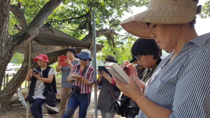 다양한 SNS를 통해 농산물을 홍보하고 판매한 경험이 있는 농업인 블로거와 일반 블로거 15명으로 구성돼 있는 경기도 '레인보우 SNS기자단'이 9일 양주시를 방문했다. 사진은 레인보우 기자단이 열심히 취재를 하는 모습.(사진제공=양주시청)