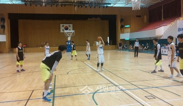 최근 '제9회 완도군수배 힘 한마음 농구대회'가 전남 완도군 농어민문화체육센터에서 전국의 농구동호회 15개팀 200여명이 참가한 가운데 성황리에 개최됐다. 사진은 대회 참가자들이 경기를 펼치고 있는 모습.(사진제공=완도군청)