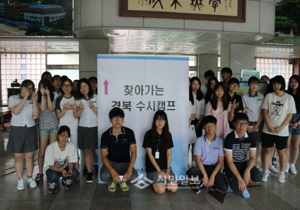 지난 9일 경북 구미시 금오고등학교는 학생 80여명이 참가한 가운데 매일신문 교육센터에서 주관하는 '지역대학과 함께하는 찾아가는 경북 수시캠프'를 실시했다. 사진은 행사에 참석한 학생들이 기념촬영하는 모습.(사진제공=구미교육지원청)