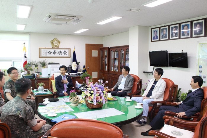 | ▲ 안성화 의장(가운데)가 육군 제6016부대 방문단과 함께 이야기를 나누고 있다.(사진제공=송파구의회) | ||