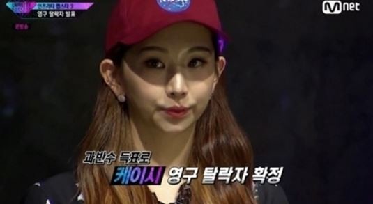 케이시는 지난 12일 오후 방송된 Mnet '언프리티랩스타 시즌3'에서 관객들의 문자투표로 영구 탈락자를 가리는 1라운드 대결에서 자이언트핑크에게 패하게 됐다.