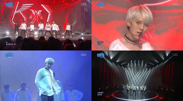 몬스타엑스는 14일 ‘인기가요’에서 하얀색 티셔츠와 이에 상반되는 검은색 하의를 입고 여심을 저격했다. 이들은 스트리트 댄스 ‘풋워크’가 가미된 댄스와 함께 카리스마 넘치는 모습으로 ‘짐승돌’의 면모를 드러냈다.