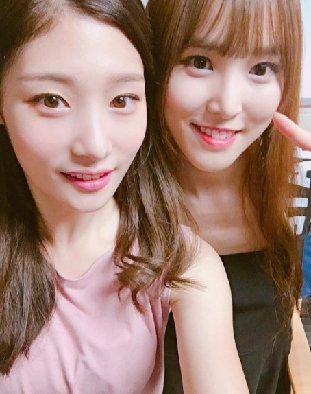 사진 속에는 유주와 채연이 밝은 표정으로 카메라를 응시하고 있다. 특히 두 사람의 미모가 눈길을 끌었다.