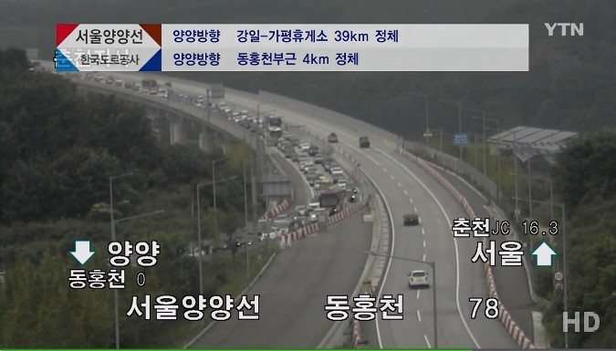 현재 오전 11시 기준으로 서울에서 강릉까지 6시간 반, 서울에서 대전까지 3시간 30분 정도 걸리고 있다.