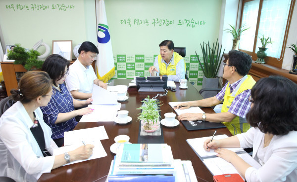 | ▲ 조길형 서울 영등포구청장이 구청장실에서 '2016 다문화가족 실태조사관련 업무협의'를 실시하고 있다. | ||