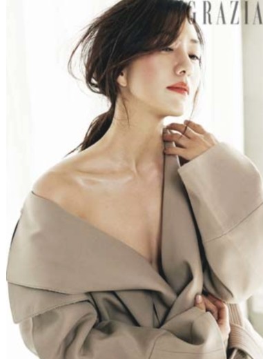사진 속 김희애는 머리를 풀어헤친듯 살짝 묶은 헤어스타일로 깔끔한 누드톤의 메이크업을 한 채 카메라를 바라보고 있다.