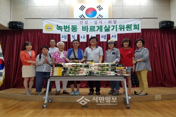 최근 서울 은평구 녹번동 바르게살기위원회는 '행복나눔 물품지원 행사'를 개최하고 동 복지두레에서 추천받은 지역내 어려운 이웃에게 쌀과 소고기 등을 전달했다. 사진은 관계자들이 기념촬영하는 모습.(사진제공=은평구청)
