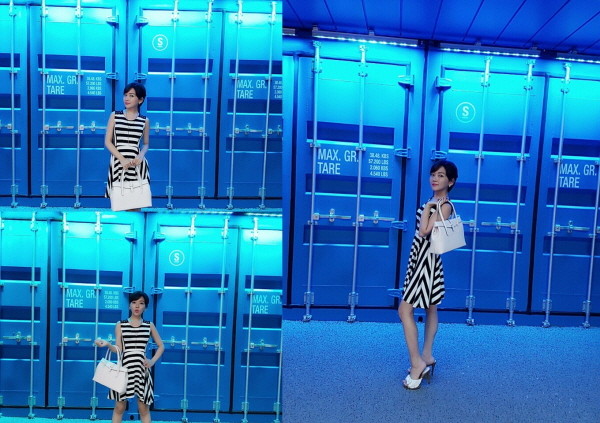 민송아는 16일 자신의 SNS에 "서울숲 앞에 신기한 장소 발견~~!! 컨테이너 박스가 이리도 예쁠 수가..."라는 글과 함께 사진을 게재했다. 스트라이프 무늬 원피스를 입고 델라스텔라핸드백을 들고 포즈를 취해 각선미가 돋보이는 매력적인 컷을 완성했다.