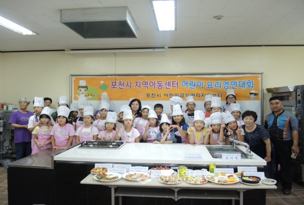 지난 16일 경기 포천시는 대진대학교 생활과학관 조리실습실에서 어린이급식관리지원센터 주관 아래 '2016년 포천시 지역아동센터 어린이 요리경연대회'를 개최했다. 사진은 대회 참가자들이 기념촬영하는 모습.(사진제공=포천시청)