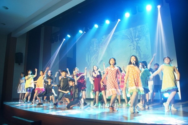 최근 경기 여주시 여성회관 공연장에서 '제5회 여주 어린이 영어 뮤지컬 캠프'에 참여한 초등학생들이 영어 뮤지컬 'Seussical Jr'의 공연을 펼쳤다. 사진은 어린이 배우들이 뮤지컬 공연을 하고 있는 모습.(사진제공=여주시청)