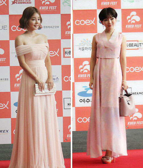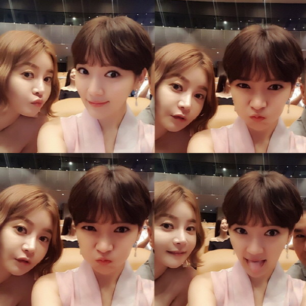 18일 서울 강남구 코엑스 오디토리움에서 열린 '2016 K웹페스트'에 참석한 민송아와 김하정은 홍보대사를 맡은 김정훈, 최윤영 등 배우들과 함께 레드카펫 행사에서 우아한 드레스 차림에 이어 대기실에서 촬영한 다양한 표정의 ‘절친샷’을 공개했다.