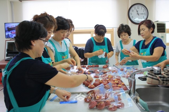지난 18일 경기 화성시 농업기술센터는 '쌀의 날'을 맞아 경기도농업기술원 조리실습실에서 동부지역 생활개선회원 20명을 대상으로 쌀모닝 쁘띠빵 만들기와 우리 쌀의 우수성을 배울 수 있는 교육을 진행했다. 사진은 회원들이 직접 만든 쌀빵을 포장하고 있는 모습.(사진제공=화성시청)