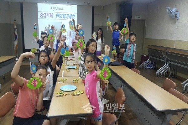 최근 다른 나라의 문화와 언어 등을 체험하기 위해 경기 안산시 고잔2동 외국인주민센터 주관으로 열린 ‘2016년 찾아가는 시민다문화체험 프로그램’에 참여한 초등학생들이 자신들이 만든 작품을 들어보이고 있다.(사진제공=안산시청)