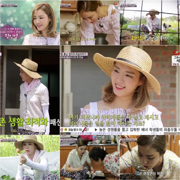이후 어머니를 도와 일손을 거든 정인영은 불볕 같은 태양 아래 고구마를 캐고, 돼지 김치찌개와 크래미 오이롤을 직접 만들며 어머니를 위한 식사를 준비했다. 푸짐한 한상차림에 어머니는 "며느리 같다"고 기뻐해 정인영은 함박웃음을 지었다.
