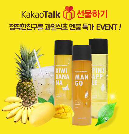 정직한친구들 D-DAY 과일발효식초는 망고식초, 키위바나나식초, 파인애플식초 3종으로 이루어져 있다. 파인애플식초는 과일식초를 처음 접하는 사람이 무난하게 섭취할 수 있는 새콤달콤한 맛이 특징으로 피로회복과 소화에 좋으며 망고식초는 부드럽고 달콤한 맛과 향을 느낄 수 있고 피부미용에 좋다. 또한 키위바나나식초는 블랜딩한 혼합 식초로써 가벼움과 상쾌함을 느낄 수 있으며 포만감과 변비개선을 할 수 있다. 첨가물을 사용하지 않고 신선한 과일과 발효식초만을 사용하여 만들었기 때문에 부담스럽지 않게 즐길 수 있다.