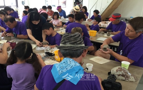 최근 경기 이천시 건강가정지원센터는 백사면 인온아트센터에서 3세대 9가족, 총 52명이 참석한 가운데 '행복을 빚는 우리가족 도자기화분 만들기' 체험활동을 성황리에 마쳤다. 사진은 참가자들이 도자기를 빚고 있는 모습.(사진제공=이천시청)