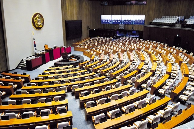 지난 7월26일 정부가 국회에 제출한 추경이 헌정사상 처음으로 폐기될 위기에 처하면서 올해 한국의 경제성장률이 2% 초반대로 추락할 것이라는 우려가 커지고 있다. 사진은 23일 텅 빈 국회 본회의장.