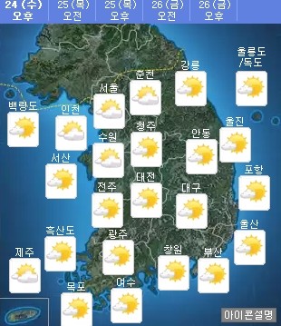 한편 기상청은 목요일부터는 기온이 떨어지고 선선해질 전망이라고 밝혔다.