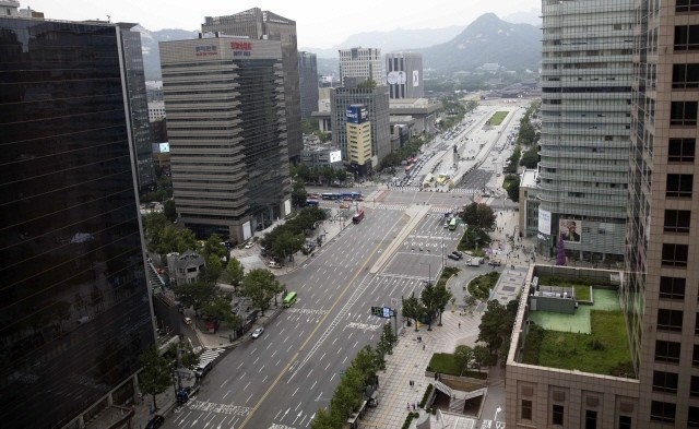 을지연습과 연계된 민방위의 날 민방공대피훈련이 실시된 24일 오후 서울시 세종대로에 차량이 통제돼 있다.