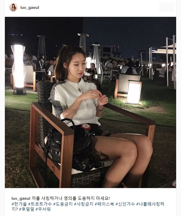 가수 한가을이 SNS 사진 도용 및 명의 사칭 피해를 당한 것으로 알려졌다.