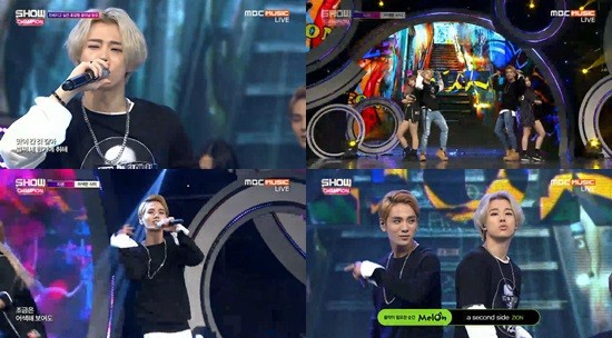 지온는 24일 ‘쇼챔피언’에서 힙합적인 느낌이 묻어나는 검은색 상의와 찢어진 청바지를 입고 화려한 퍼포먼스를 선보였다. 지온은 리드미컬한 멜로디 안에 카리스마를 내뿜으며 여심을 저격했다.