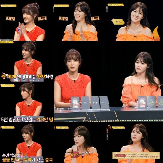 특히 신아영은 두 선수의 대퇴사두근(허벅지 앞쪽에 있는 강하고 큰 네 개의 근육)이 특히 발달해 있어 힘이 실린 묵직한 골을 만들 것이라는 재치 넘치는 분석으로 큰 웃음을 안겼다.